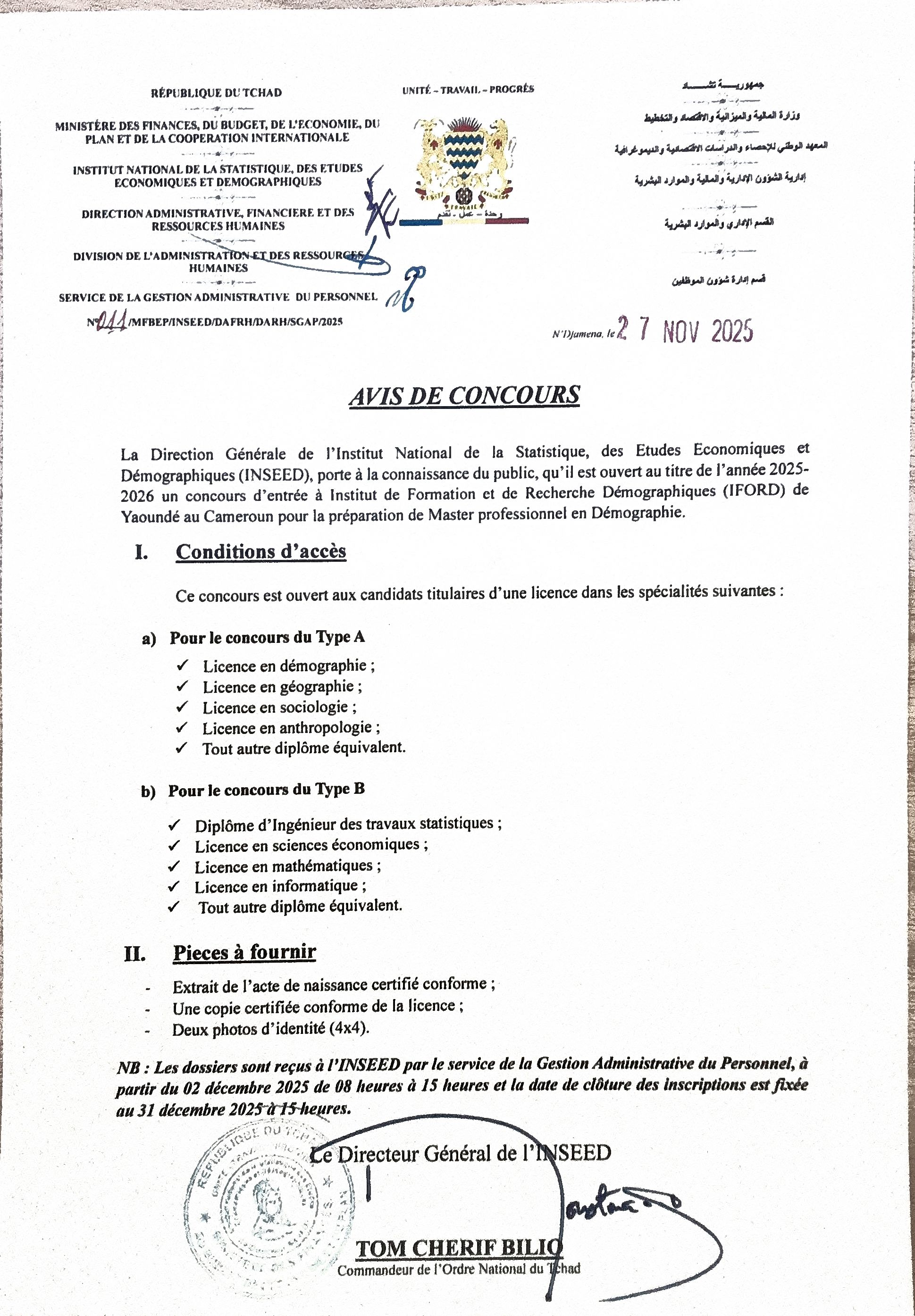 Une cérémonie de passation de service a eu lieu le 09 décembre 2024 à 14h dans la salle de réunions de l’Institut National de la Statistique, des Etud...